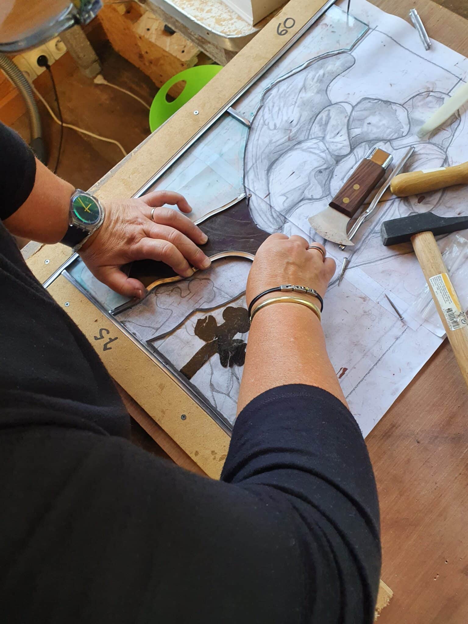 - Procéder à l’assemblage des pièces de verre