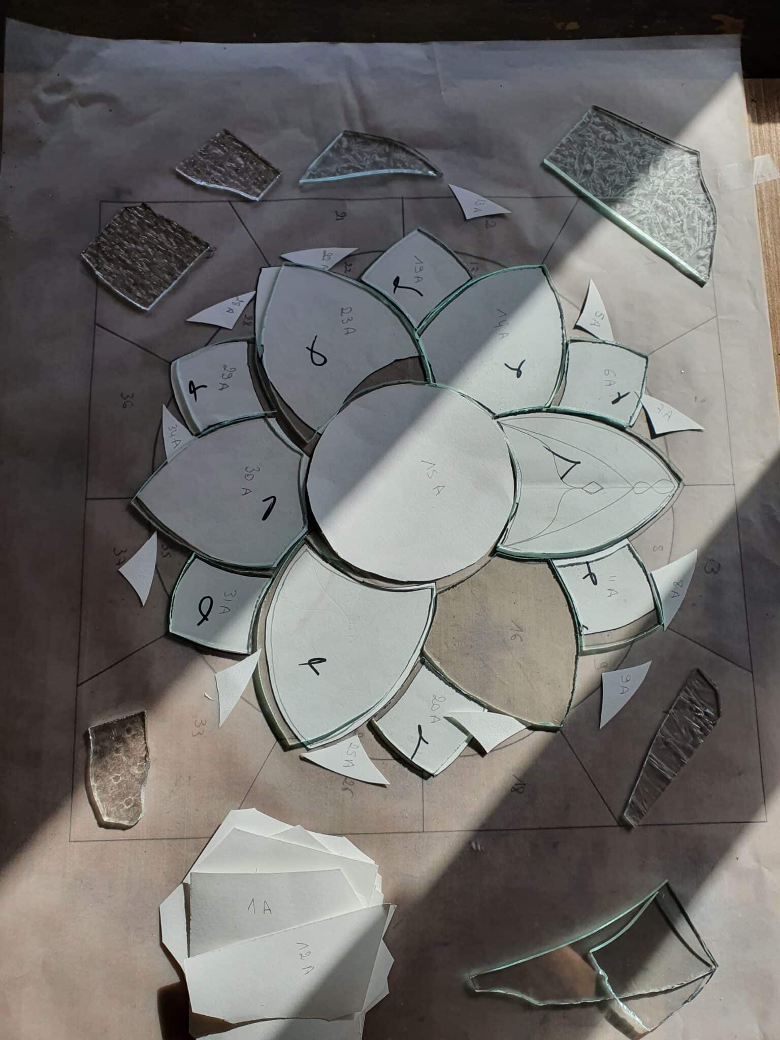 - Sélectionner les couleurs et les textures de verre, les répartir selon le projet puis annoter les teintes de références
