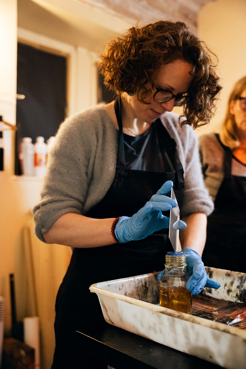 Laurence Papoutchian s’inscrit dans cette tradition et fait vivre une photographie artisanale. Elle privilégie le geste, la lenteur et l’aléatoire pour créer des images singulières et intemporelles. Formée en 2018 à ce procédé, elle développe un travail personnel autour d’une photographie organique et vivante. Elle explore l’imprévisible et retrouve ainsi la magie originelle de la photographie. Elle transmet aujourd’hui son savoir-faire en animant des ateliers et des formations destinés aux scolaires, aux photographes amateurs et professionnels, ainsi qu’au grand public.